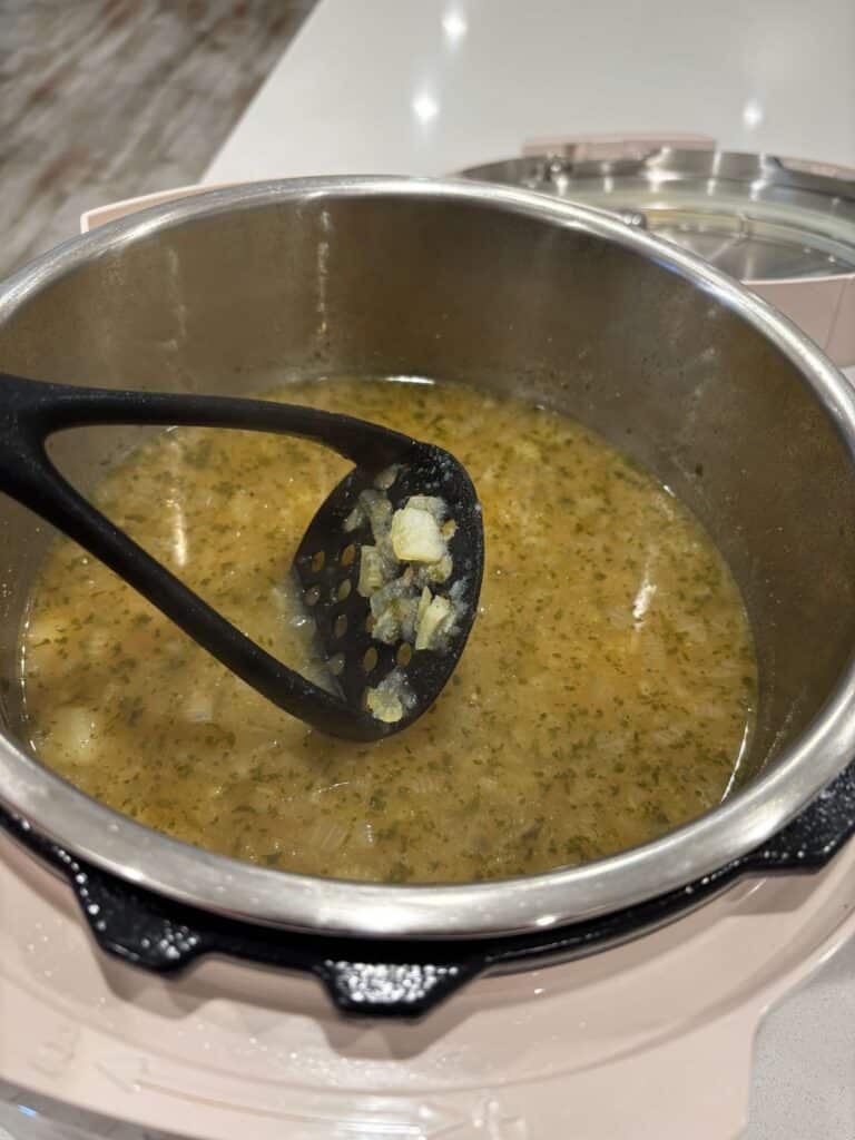 Stir in the evaporated milk and warm through on the sauté setting. Taste test and add salt as needed.
