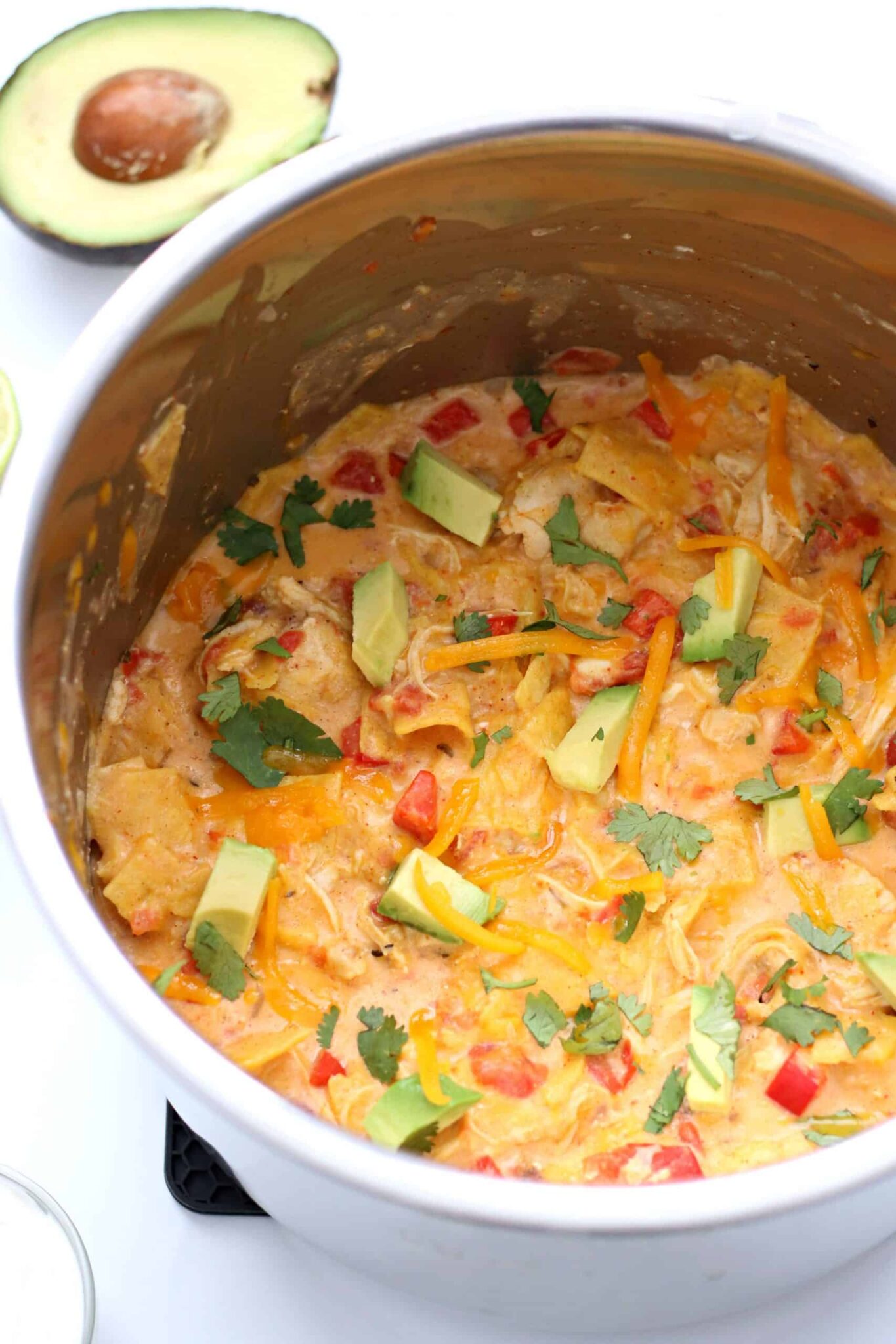 This cheesy and creamy chicken casserole with tortillas and Rotel has its roots in Texas but that doesn’t mean us non-Texans can’t enjoy it too! Whip up my version in just a few minutes using your Instant Pot and NO cream of soups!