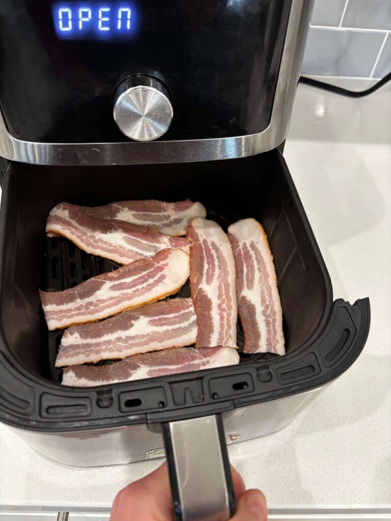 - Cook bacon and crumble. (I used my air fryer 400° F for 10 minutes). Set aside.