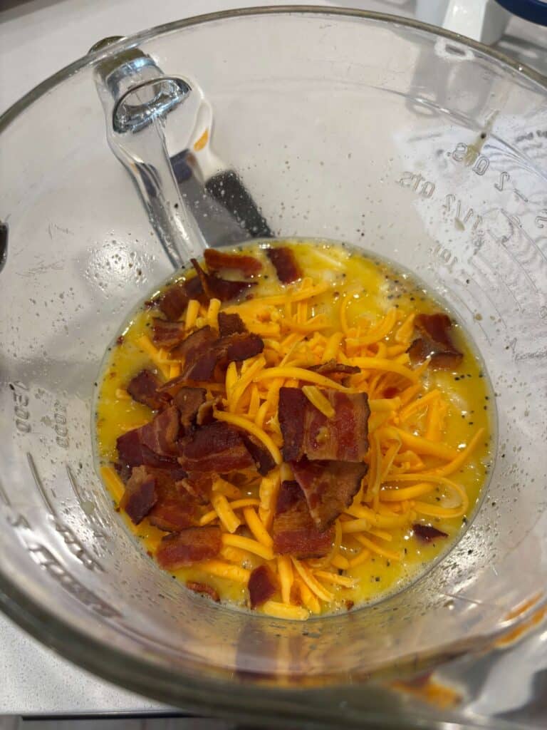 Preheat oven to 350° F. Cook bacon and crumble. (I used my air fryer 400° F for 10 minutes). Set aside.