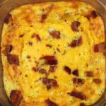 A simple cheesy bacon breakfast bake with eggs and hashbrown potatoes. It’s easy to make and so delicious!