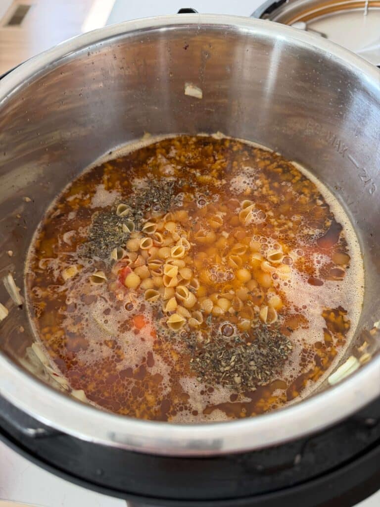 - Cover Instant Pot and secure the lid. Make sure valve is set to sealing. Set SOUP button to 2 minutes. When time is up let pot sit for 5 minutes and then move valve to venting. Remove the lid.