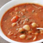 A hearty soup made with savory Italian sausage, fire-roasted tomatoes, tender veggies and ditalini pasta, finished with parmesan. It tastes even better the next day. Make it in the Instant Pot or slow cooker.