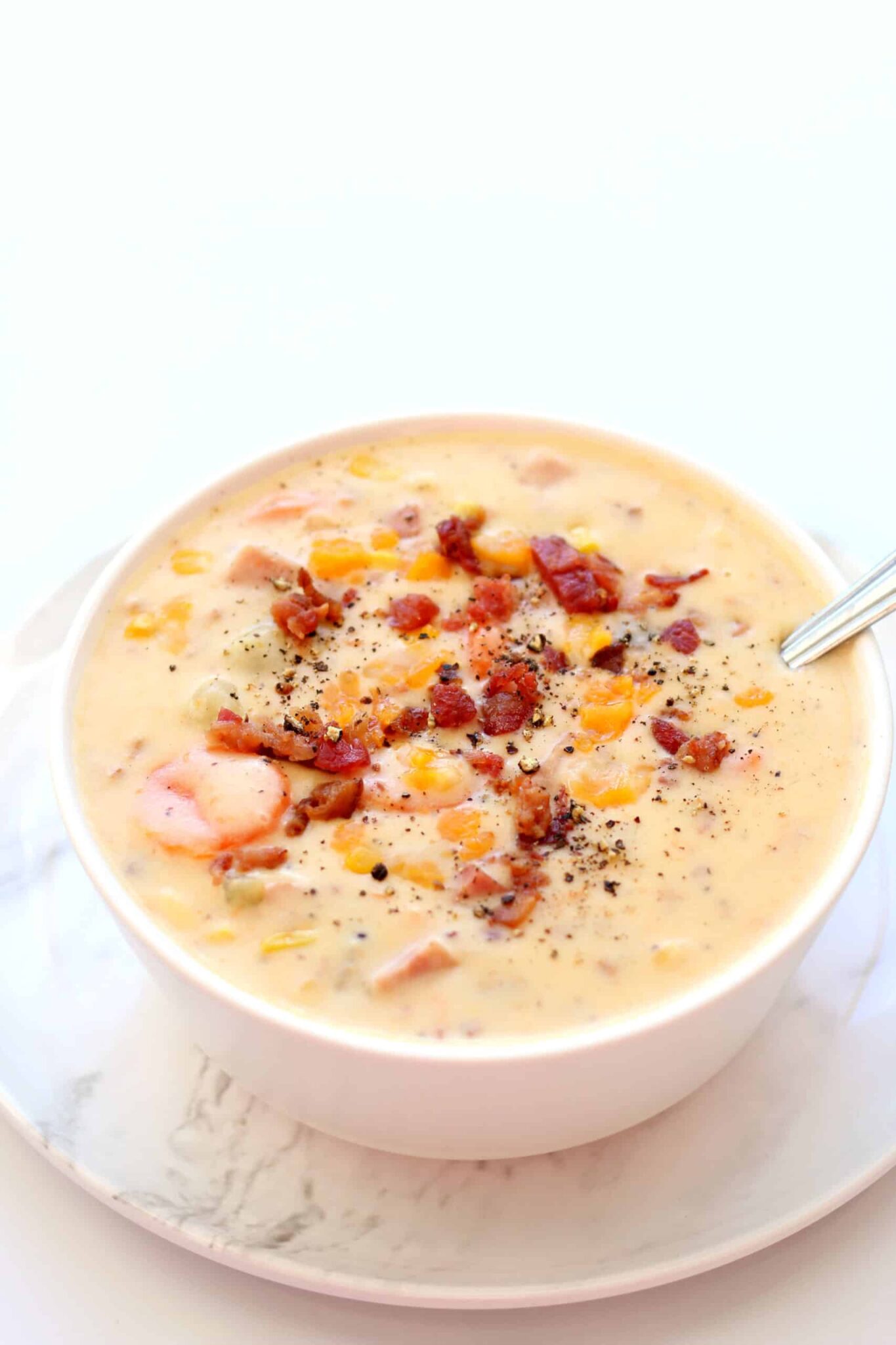 A creamy, comforting soup that is chock full of ham, potatoes, carrots and corn. A perfect dinner for a fall or winter evening.