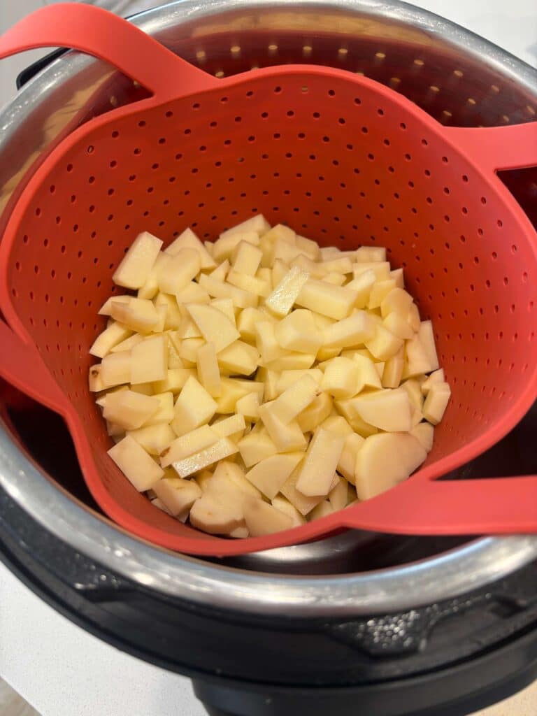 - I used my 6 quart Instant Pot* to cook the potatoes and my silicone steamer basket*.