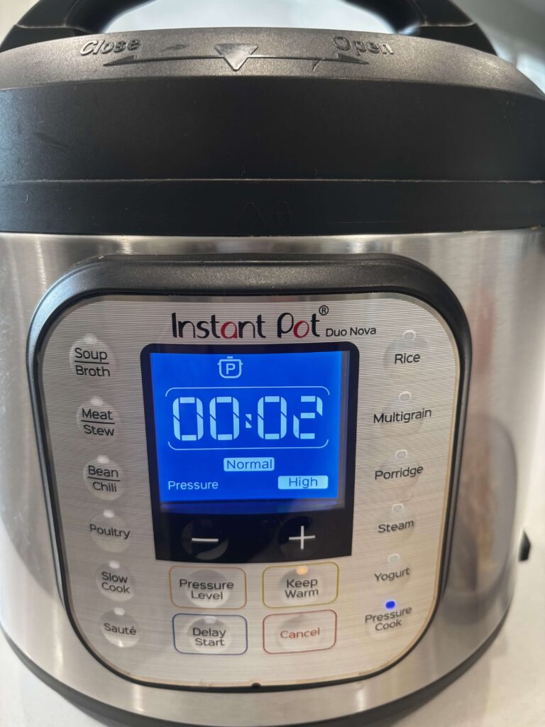 - Pour 1 ½ cups water into bottom of Instant Pot. Add potatoes into a steamer basket and drop the basket into the Instant Pot. Cover Instant Pot and secure the lid. Make sure valve is set to sealing. Set manual/pressure cook button to 2 minutes.