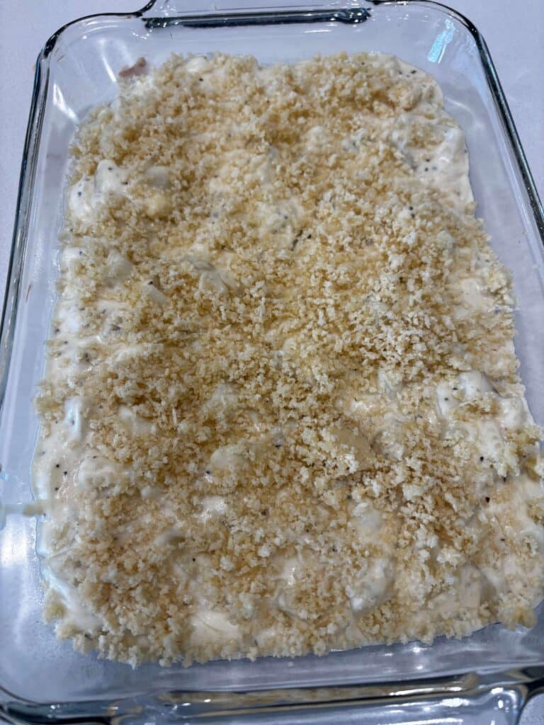 - Spread the potato mixture into a 9×13 inch pan. In a bowl mix together the 1 Tbsp melted butter and panko. Sprinkle over the top of the potatoes.