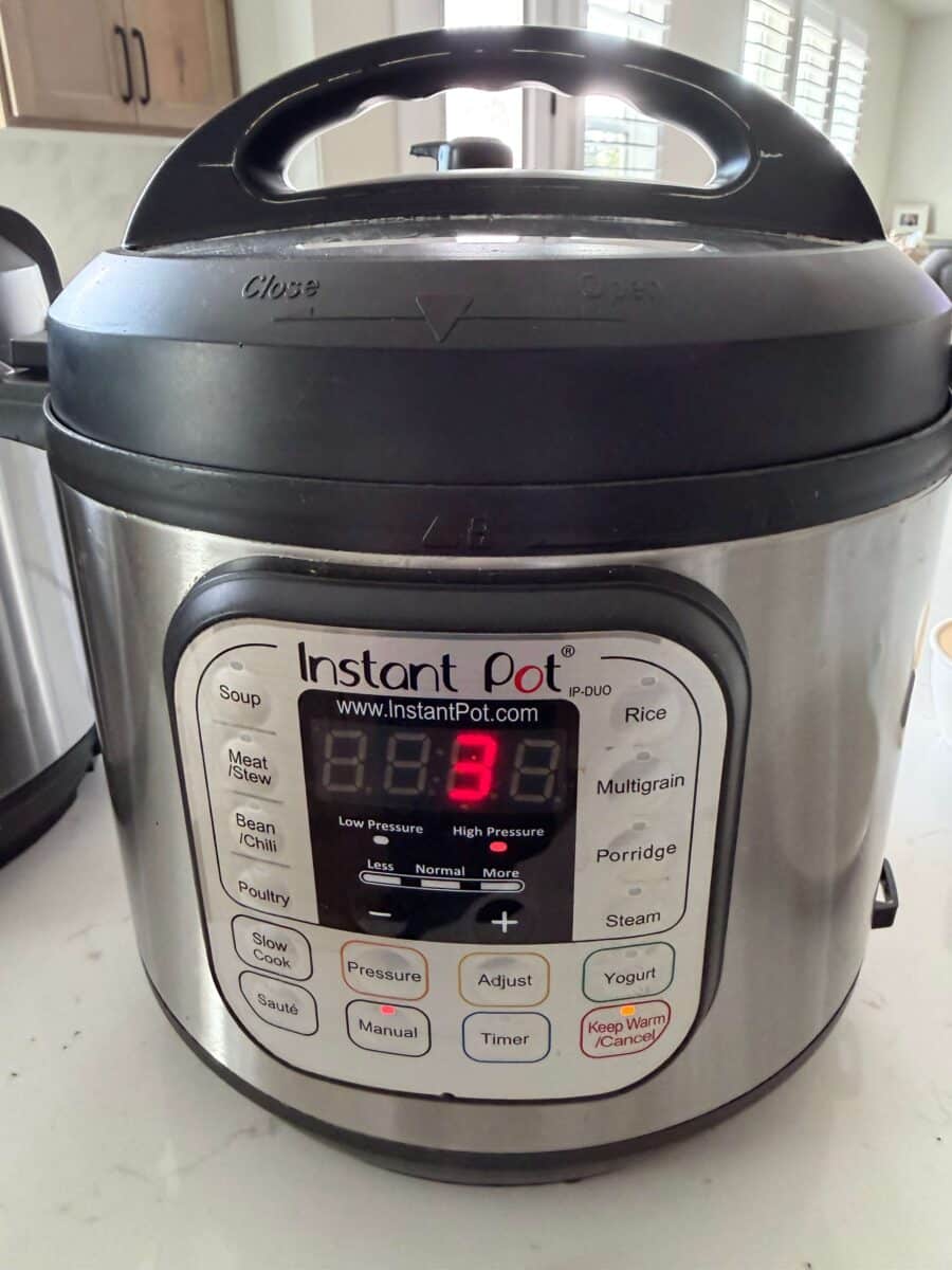 - I used my 6 quart Instant Pot*. You can also make this in a 3, 6 or 8 quart pot.