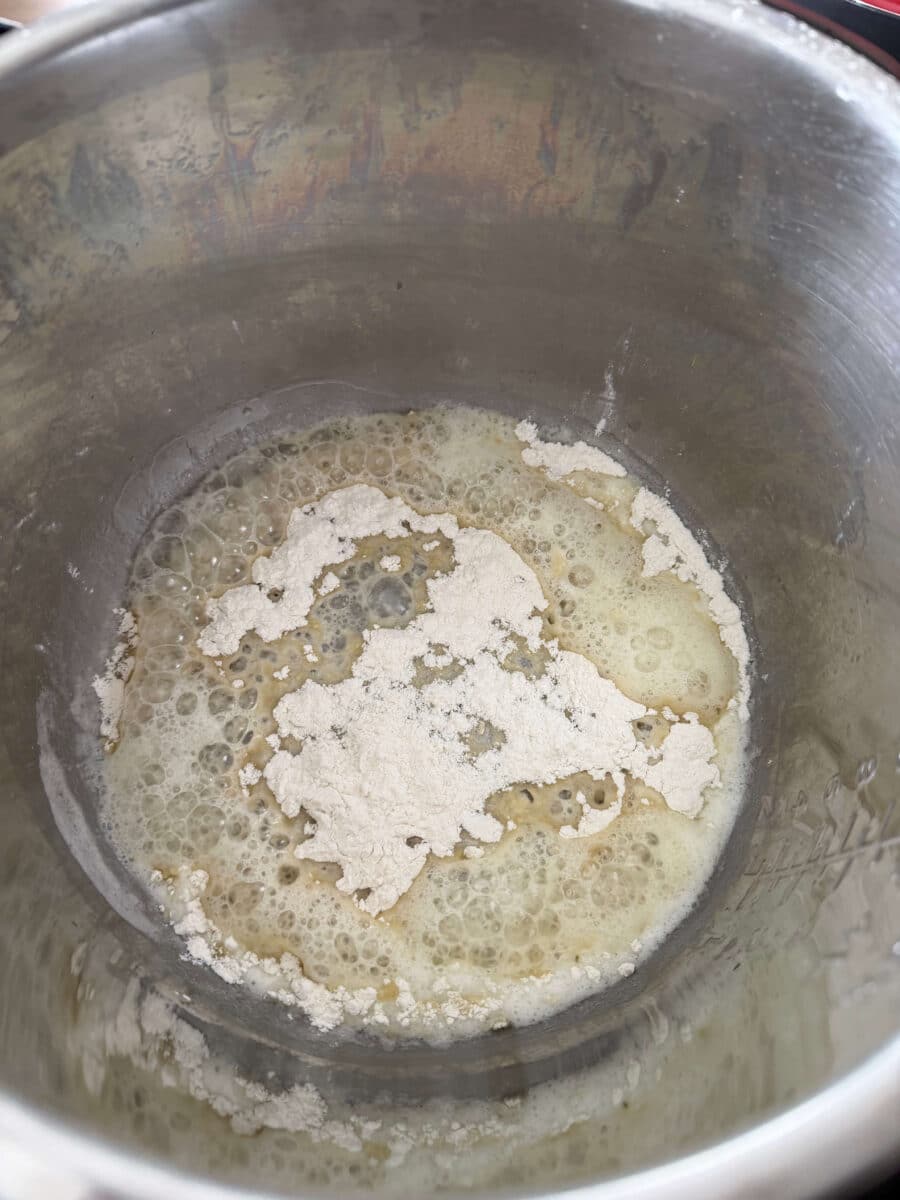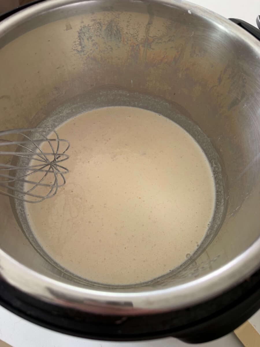 - Turn Instant Pot to sauté setting. Add in the butter and let it melt. Sprinkle the flour into the butter and whisk for about 1 minute. Stir until mixture is a light tan color.