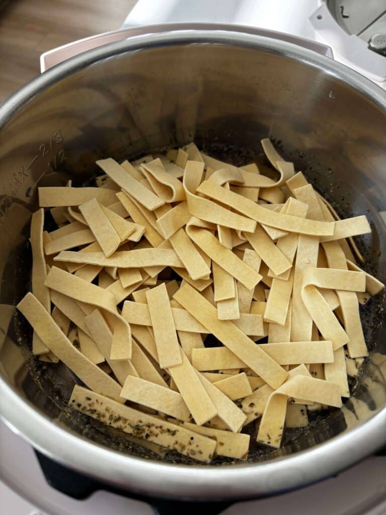 Pour in the broth and scrape bottom of pot so that nothing is sticking. Turn off Instant Pot.