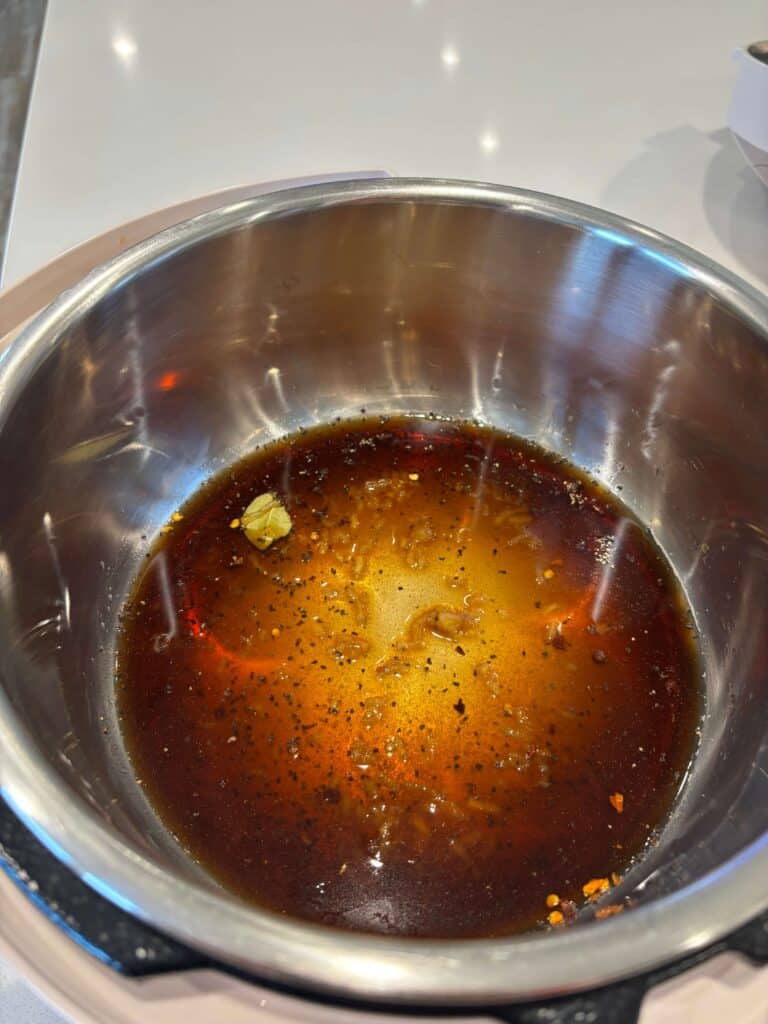 - Add vinegar and soy sauce into Instant Pot and turn on the sauté setting. Let the mixture boil for 7 minutes to reduce down and intensify in flavor.