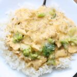 This dish reminds me of my popular broccoli cheese soup. It’s a cheesy sauce with chunks of chicken and broccoli that’s ladled over rice (or whatever else you like!). Lots of flavor but not a lot of work! You can even make rice at the same time in the same pot, if you’d like.