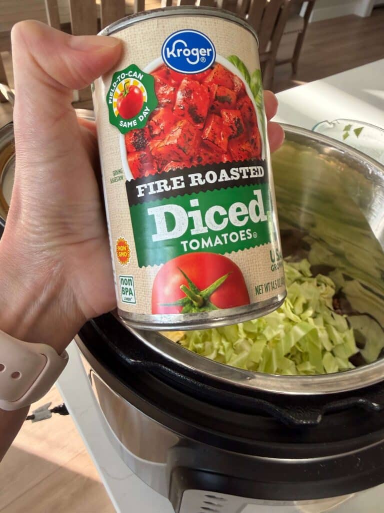 A simple one-pot meal with seasoned ground beef, tender rice and cabbage in a savory tomato broth made fast in the Instant Pot.