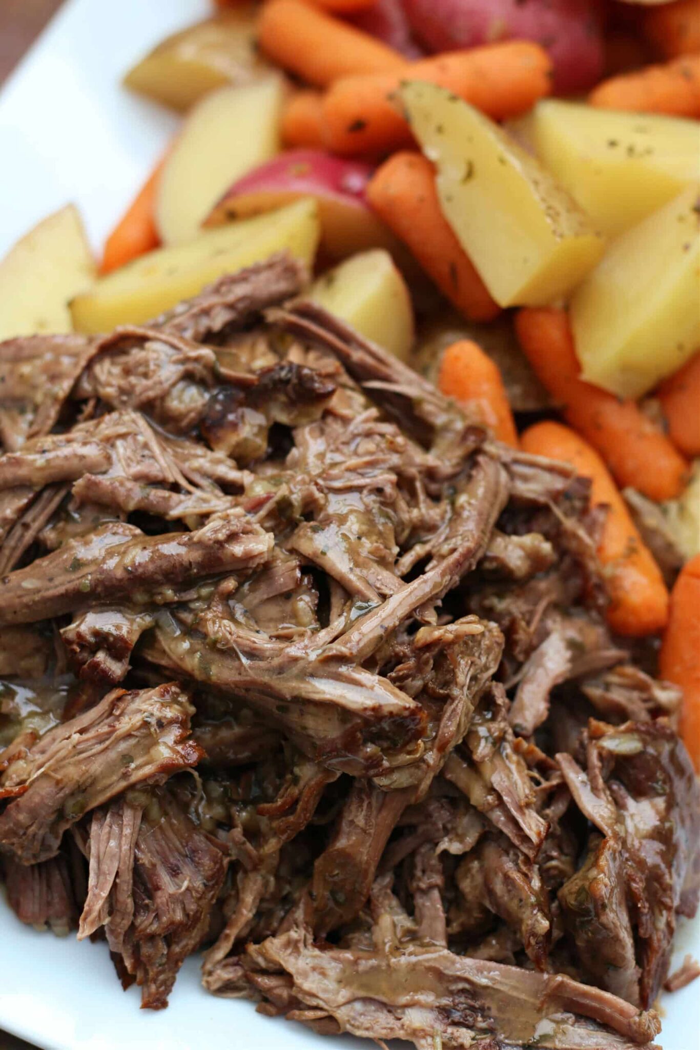 With only 6 ingredients and your Instant Pot or slow cooker you can make this tender roast with potatoes, carrots and savory gravy.