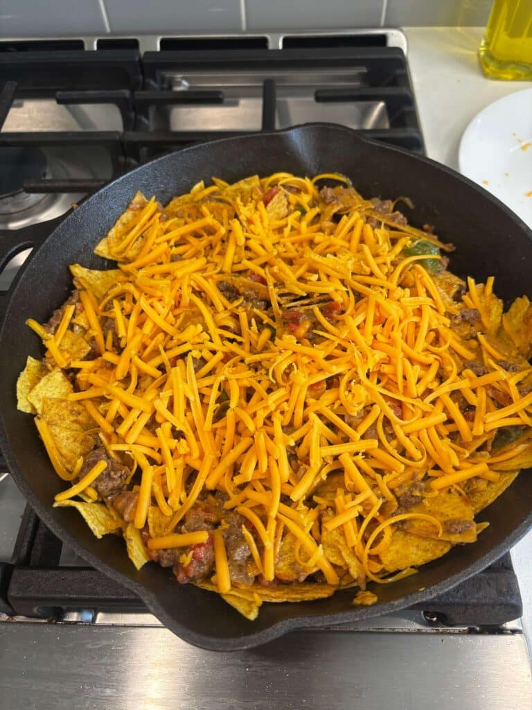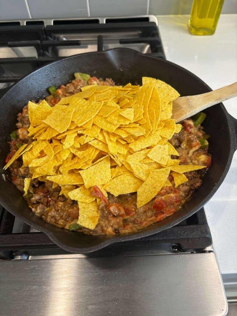 A cheesy, Tex-Mex-inspired twist on the classic! It’s got seasoned beef, Rotel tomatoes, crispy taco shells and melty cheddar all baked into an easy one pan meal.