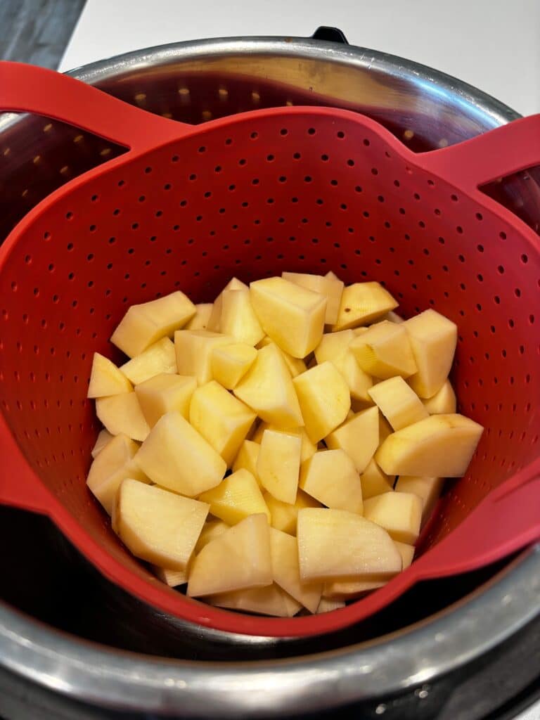 - I used my 6 quart Instant Pot*to make the potatoes. I used my silicone steamer basket*.