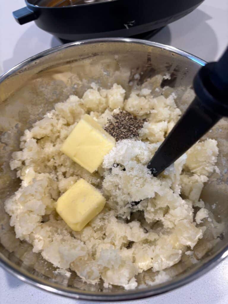 - Cover and secure the lid. Make sure valve is set to sealing. Set manual/pressure cook button to 8 minutes. When time is up move valve to venting. Remove the lid. Discard the water. Pour the potatoes into bottom of Instant Pot and mash. Stir in the butter, sour cream, milk, ¾ tsp salt and pepper.