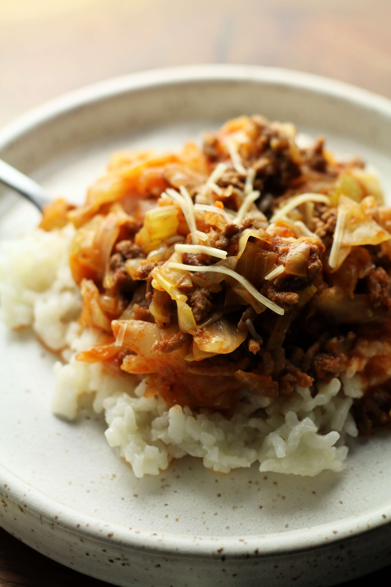 An easy dinner with all the flavors of stuffed cabbage rolls without the fuss. Ground beef, cabbage and tomatoes cook together in one pot with savory seasonings. Make it in your Instant Pot or slow cooker.