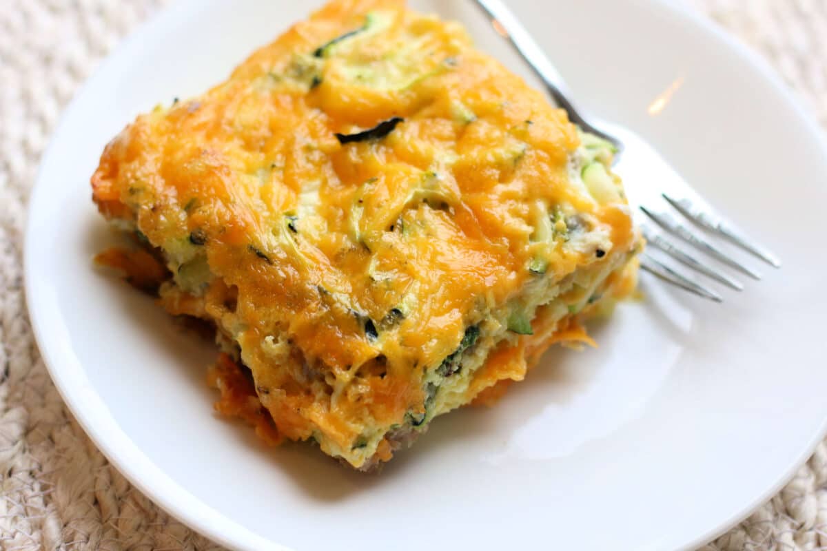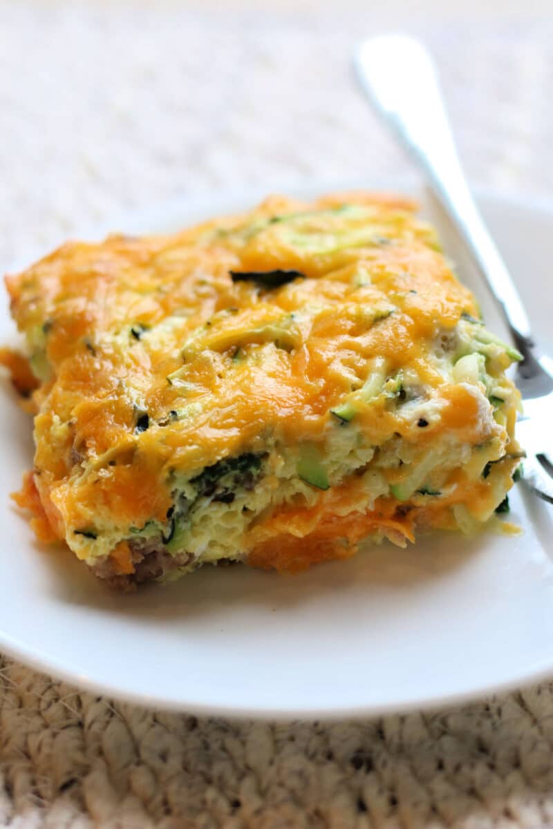 Low Carb Casserole–an easy, protein-packed egg casserole loaded with sausage, spinach, zucchini, and cheddar. It’s perfect for meal prep or feeding a crowd.