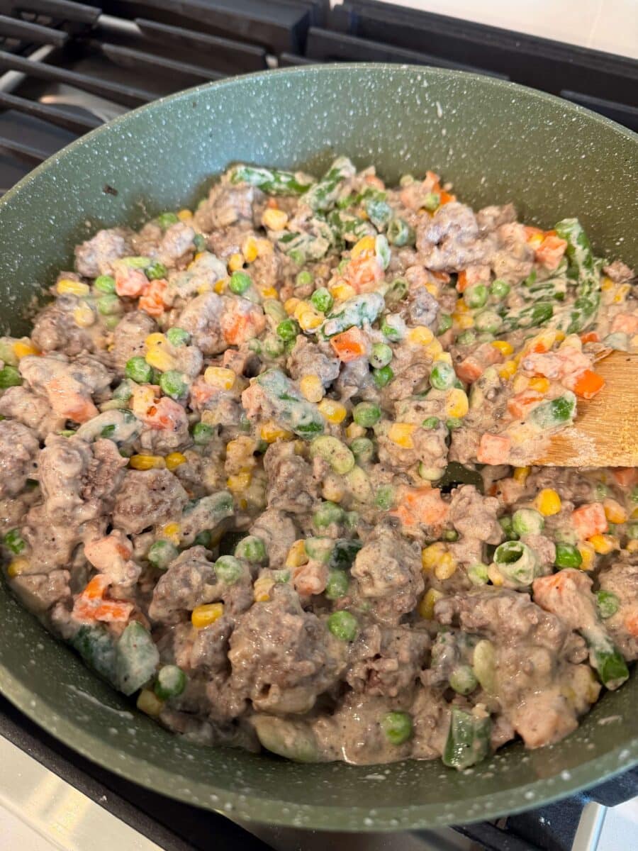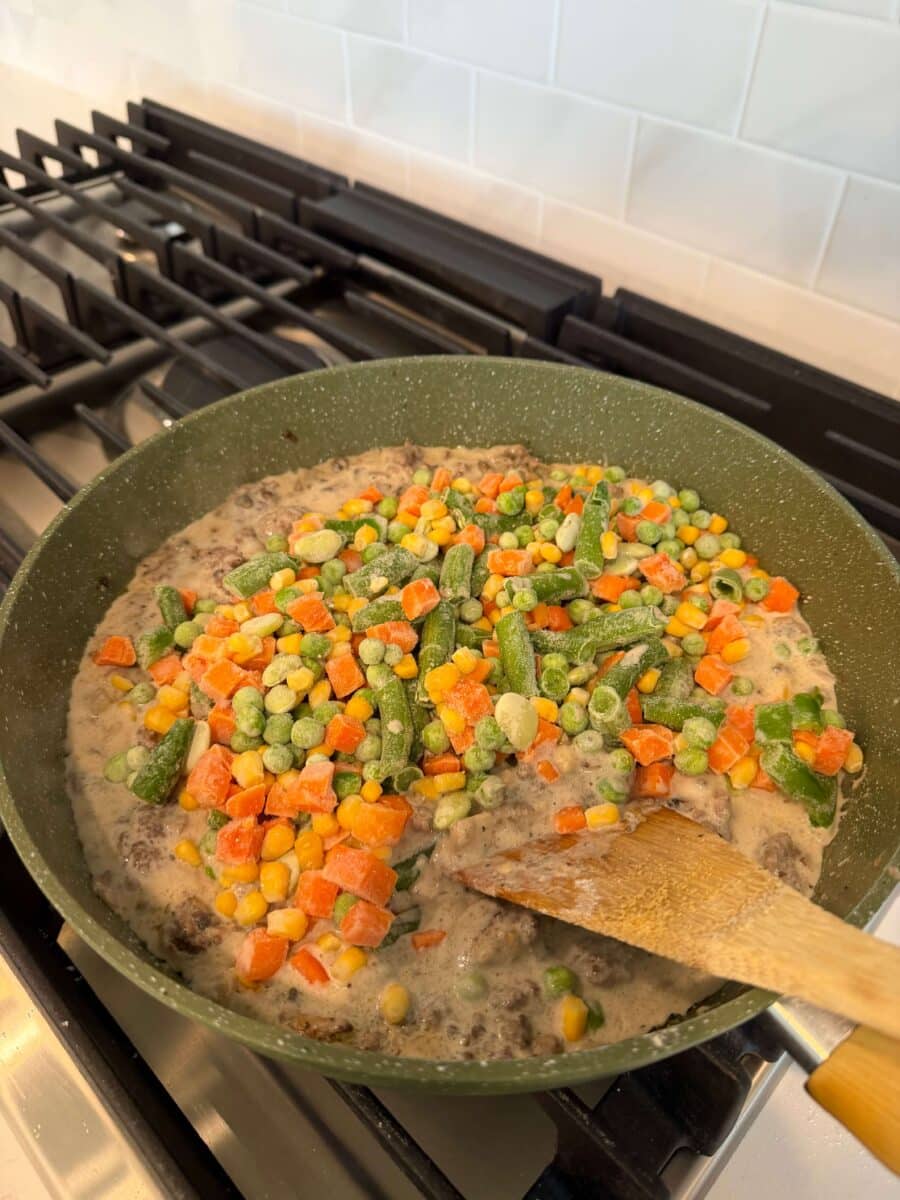- I used mixed veggies with green beans, corn, peas and carrots.
