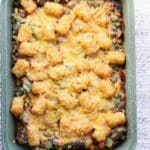 - Store leftovers in an airtight container* in the refrigerator for up to 3-4 days. Reheat in the oven or air fryer to help crisp the tater tots back up (microwave works but they’ll be softer).