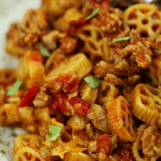 Beat Michigan Casserole--wagon wheel pasta with ground pork, seasonings, mushrooms, red sauce and cheese. An easy Instant Pot meal. Pin this recipe for later! Beat Michigan Casserole Saturday is the big day for the biggest rivalry in college football (maybe in all sports!). We are big … Read More »