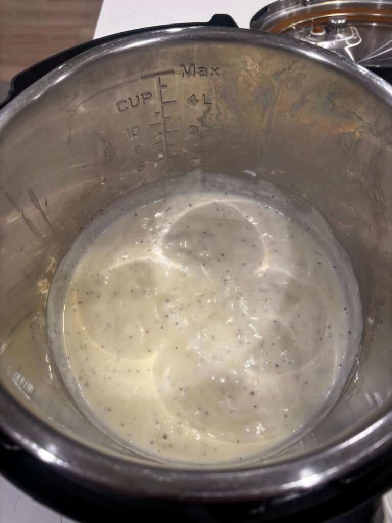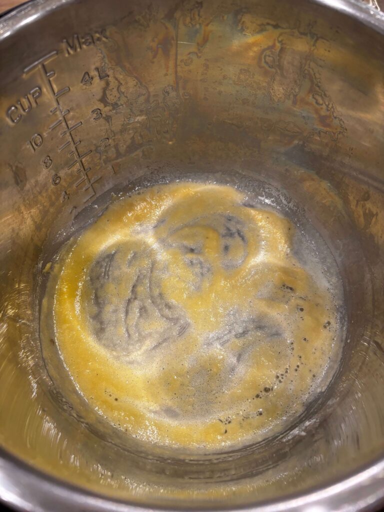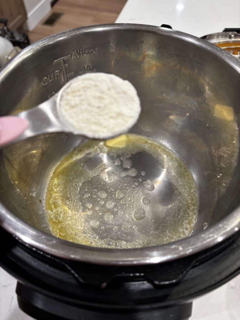 - Prepare the sauce. Dump the water out of the Instant Pot. Turn the Instant Pot to sauté setting (the medium or low setting). Add in 2 Tbsp of butter and let it melt. Whisk in the flour and cook for 1 minute. Then gradually stir in the milk, whisking the entire time. Once it has warmed through and thickened slightly, stir in the parmesan, salt and pepper to taste, and nutmeg. Turn off the heat.