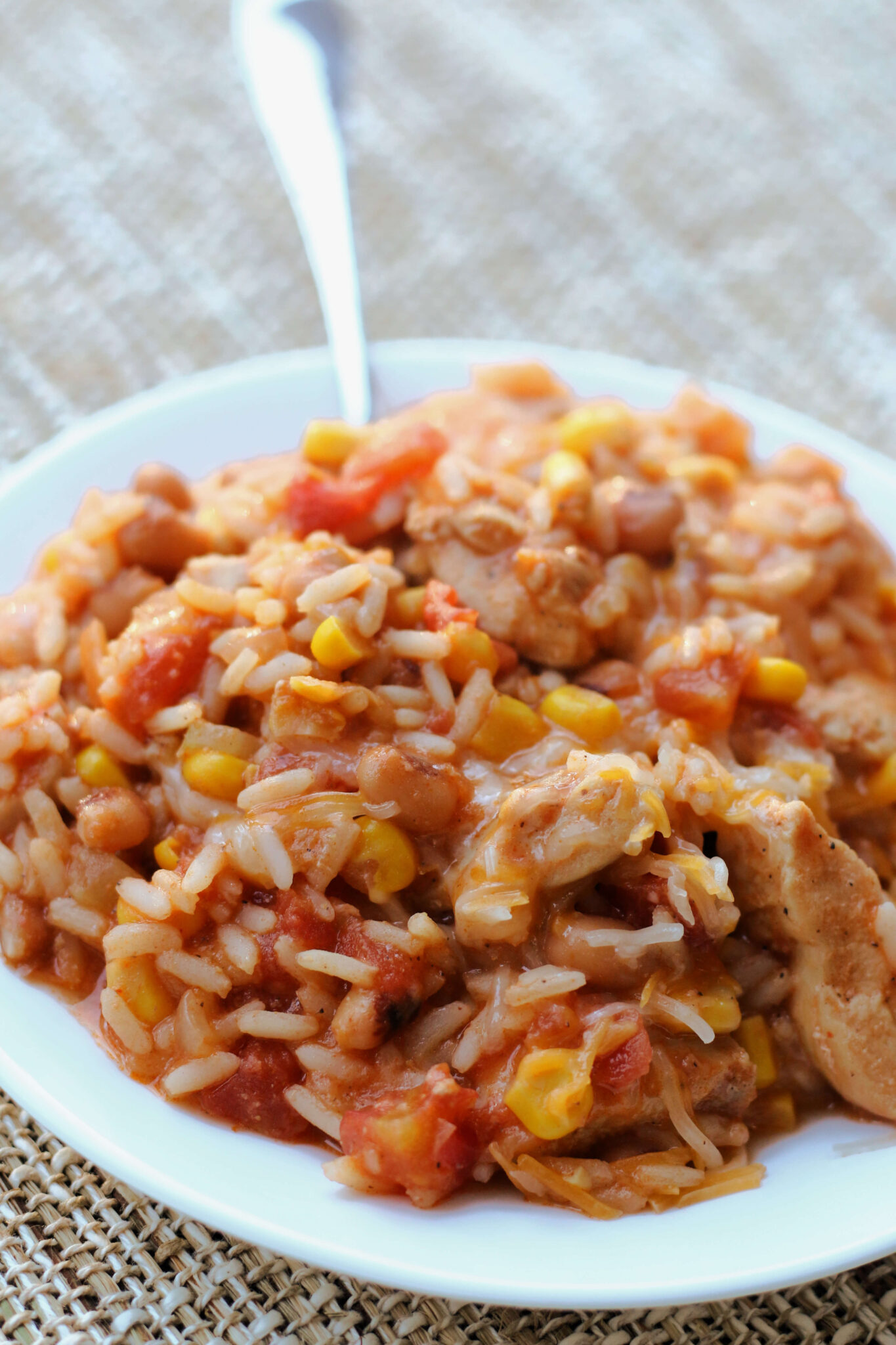 Black eyed peas with rice, vegetables, seasonings and melty cheese. An easy one pot meal that you can make quickly in your Instant Pot.