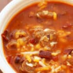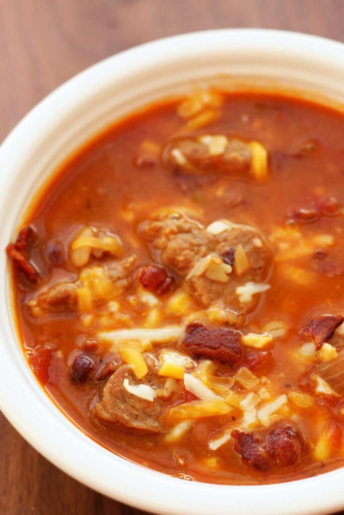 A hearty cabbage and beef soup made with V8 juice, red beans, sweet corn, and Rotel tomatoes for a flavorful dinner! Easy to make in the Instant Pot or slow cooker.
