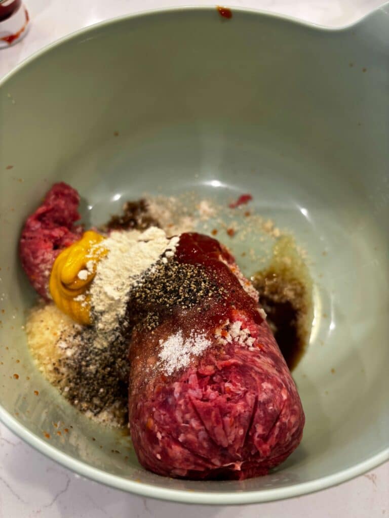 - In a mixing bowl add ground beef, panko, egg, ketchup, mustard, Worcestershire, garlic salt, pepper and onion powder. Mix gently until just combined. Shape into golf ball–size balls and place them in the slow cooker.