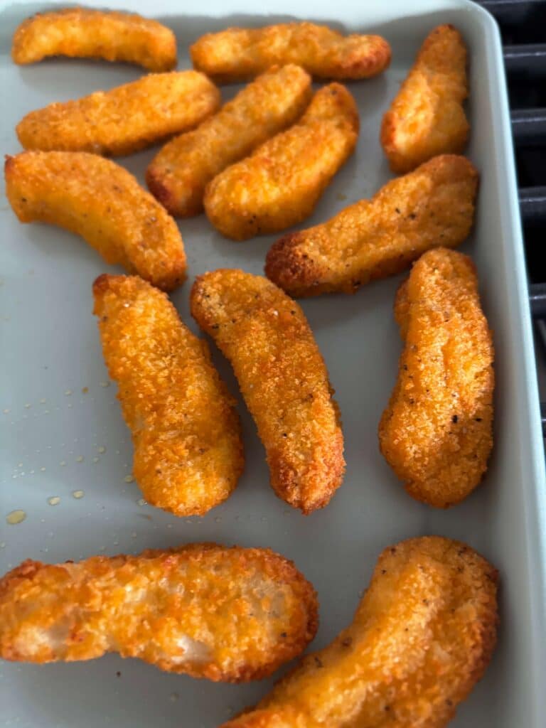 - Cook the chicken fingers according to package directions (I used the air fryer setting in my oven).