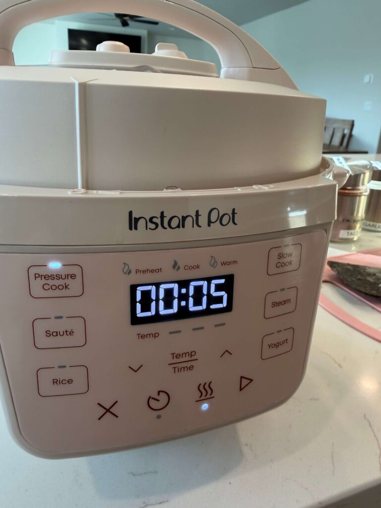 - Cover Instant Pot and secure the lid. Make sure valve is set to sealing. Set manual/pressure cook button to 5 minutes. When time is up let pot sit for 5-10 minutes and then move valve to venting. Remove the lid.